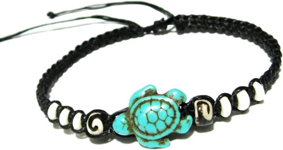 HawaiianCraftier Sea Turtle Bracelet – Adjustable Artificial Turquoise Turtle Macrame Bracelet for Women, Resin…