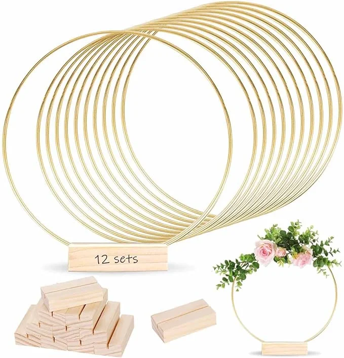 12 Pieces 12 Inch Metal Floral Hoop with Table Stand, Metal Macrame Gold Wreath Ring…