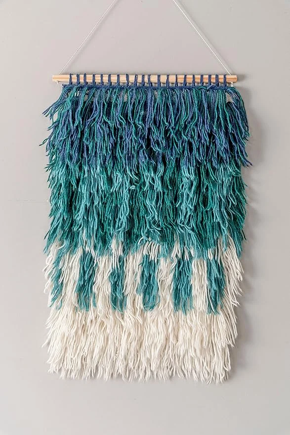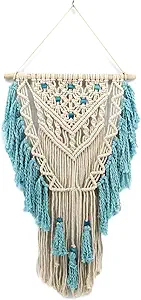 LANGUGU Macrame Wall Hanging, Woven Wall Art with Aqua Blue Tassels…
