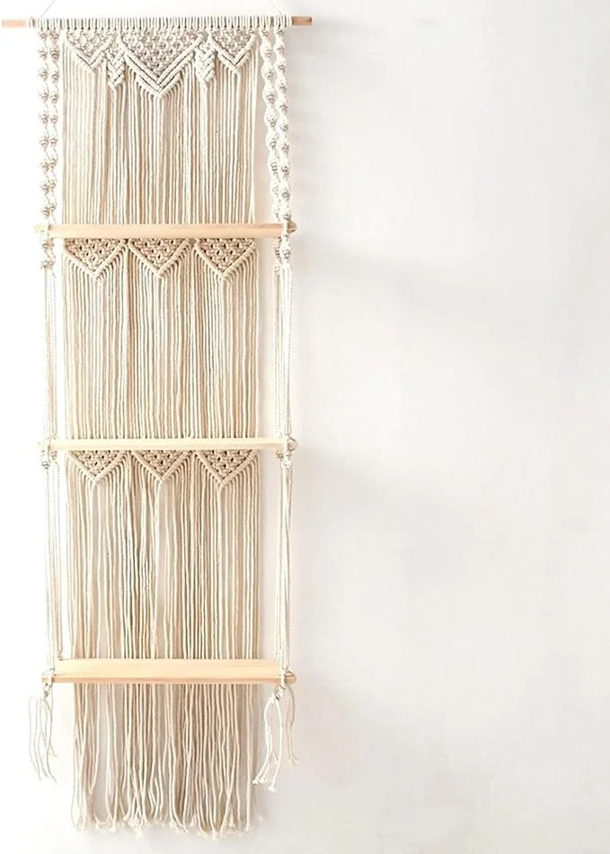 Decorative Macrame Wall Hanging Shelf, Floating Wood Shelf for Indoor and Outdoor…