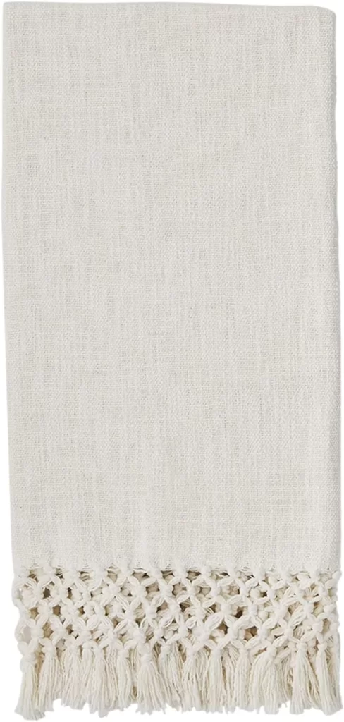 Mud Pie Macrame Throw Blanket, White, 50″ x 60″