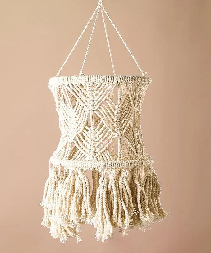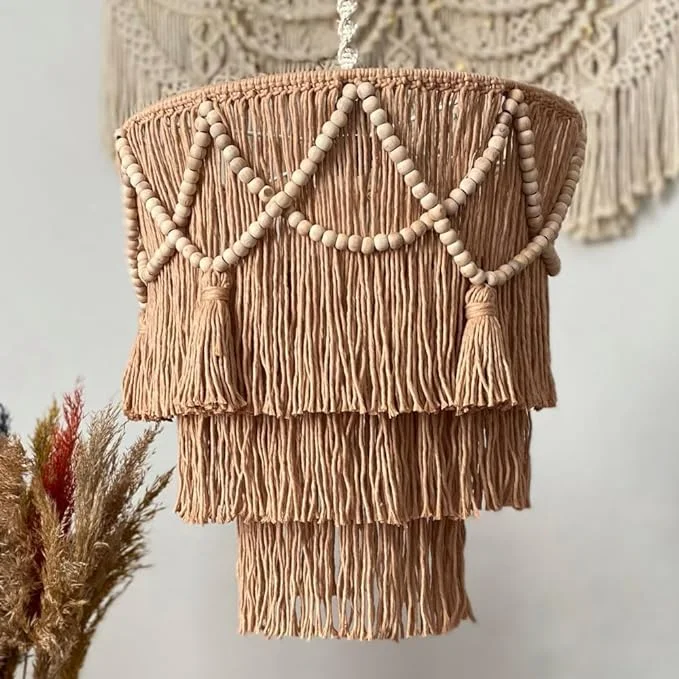 Flber Macrame Lamp with Tassels, Bohemian Style Hanging Lamp for Wedding…