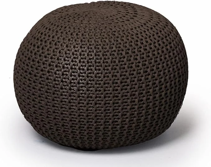 Urban Lifestyle Round Knitted Pouf, Handwoven Cotton Accent Chair, Brown