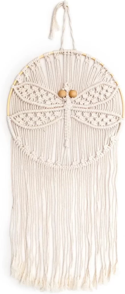 Solid Oak Dragonfly macrame wall hanging