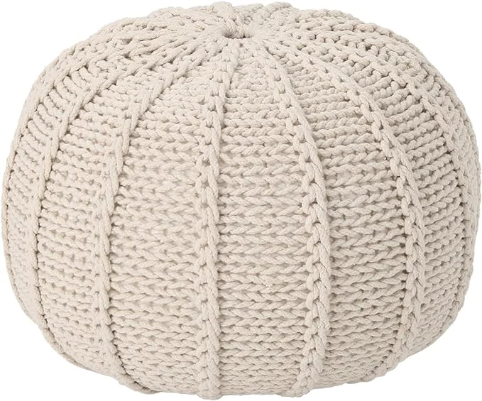 Christopher Knight Home Agatha Knitted Cotton Pouf, Beige