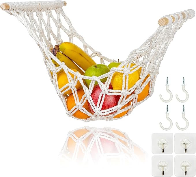 Lily & Oak Macrame Fruit Hammock for Kitchen, Hanging Basket Under Cabinet, Includes Hooks