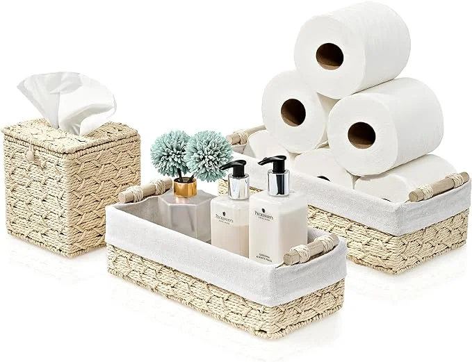 Sorbus Paper Rope Bathroom Basket and Tissue Holder Set, Decorative Wicker Baskets for Bathroom Shelves