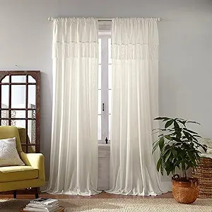 Lush Decor Bohemian Textured Cotton Macrame Window Curtain, Room Divider…