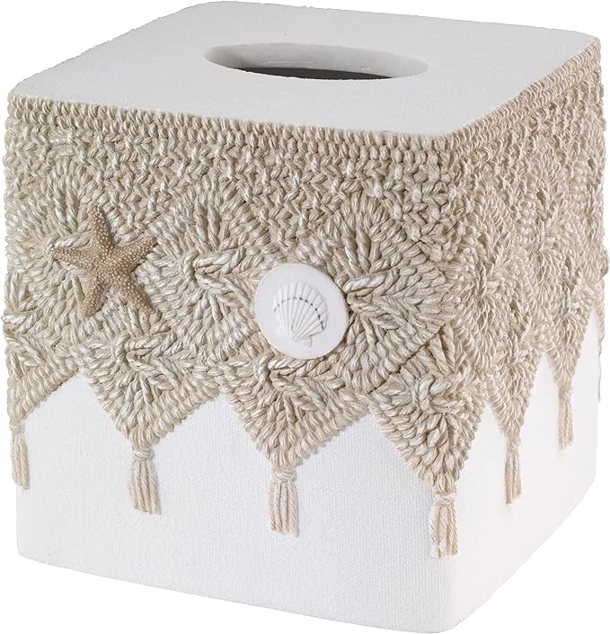 Avanti Linens Macrame Shell Collection, Tissue Box Cover,