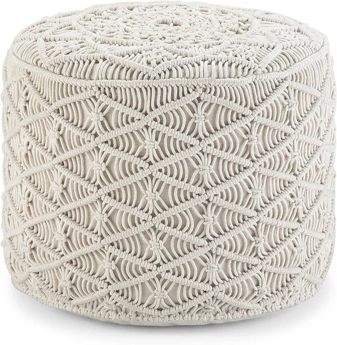 SIMPLIHOME Coates 18 Inch Round Bohemian Macrame Pouf in Cotton
