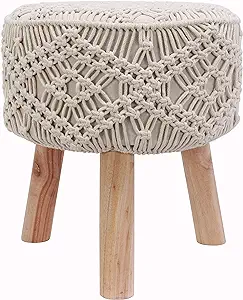 Decor Therapy Nirobi 3-Leg Crochet Wood Stool, Natural